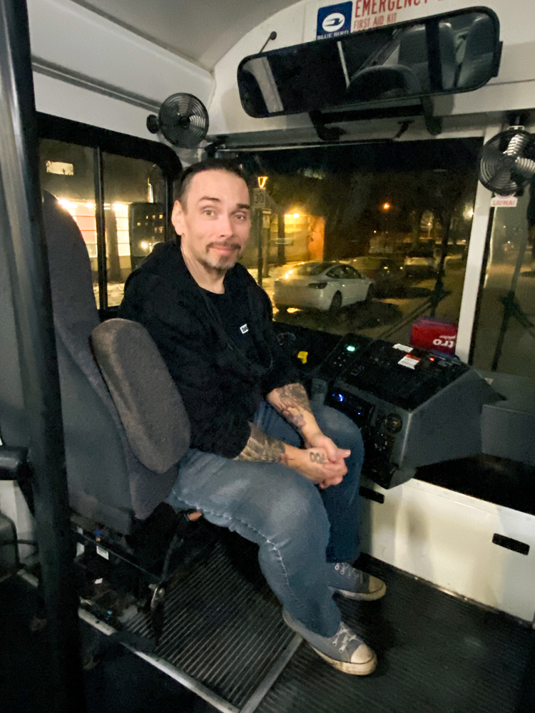 Aujourd’hui, il est chauffeur de la Roulotte, co-chef d’équipe et profondément investi dans la relation qu’il tisse avec les jeunes. Autrefois sceptique quant à ses capacités scolaires, il poursuit maintenant des études universitaires dans le but de travailler comme intervenant, et s’étonne lui-même de ses bons résultats.